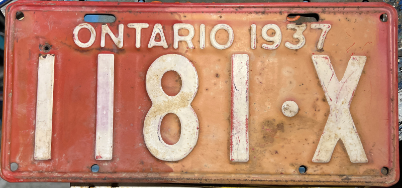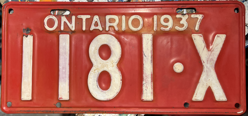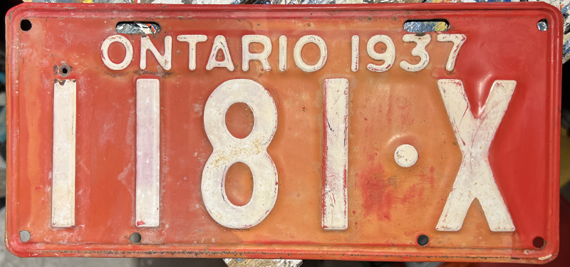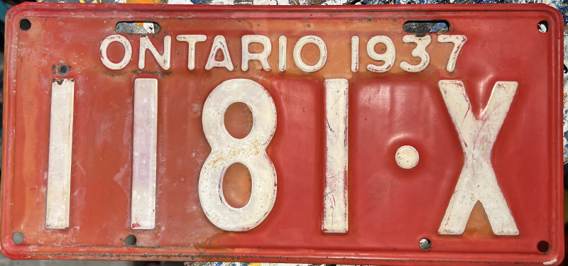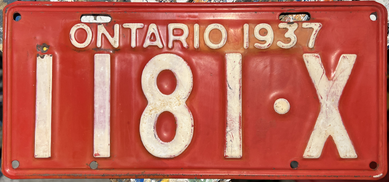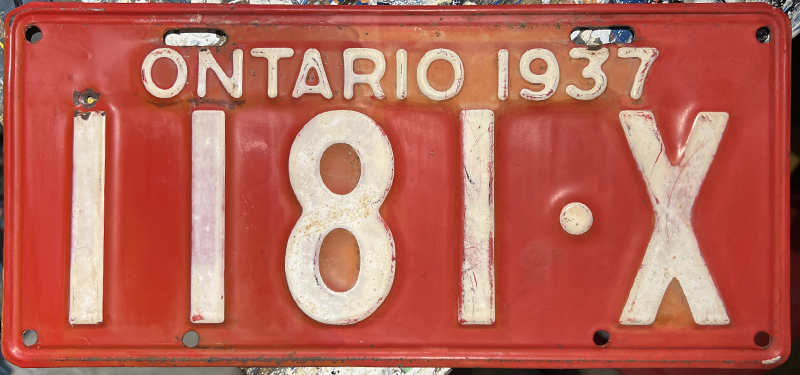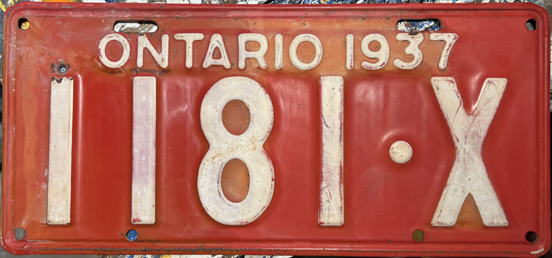 The plates were gorgeous at first sight, coming out of the envelope. The contrast was high, the numbers easily legible, and Loyalists appreciated the twin crowns. Yet red never again appeared on an Ontario passenger plate. It was used for seasonal truck plates in the 1960s, and eventually became exclusive to diplomat plates. The paint certainly lasted the one year of service for which the plates were designed. Many carefully-stored 1937 plates still retain their bright red colour today. It’s a mystery why Ontario never again took the red route for its passenger plates.
