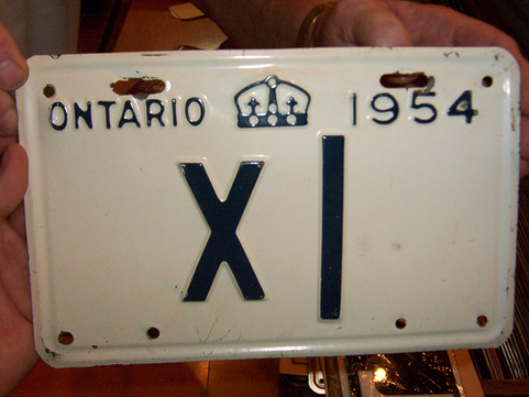 I had turned a tidy little profit when I spotted John Rubick setting up shop in a corner. John has lots of older Ontario goodies that put people like me in the mood for spendin'. At John’s table, I spent more than I had already made, picking up some mint Ontario samples and a newer Canada Forces plate. John also brought some older brown Ontario military plates, much to the delight of other collectors. John had a great deal of low-numbered DAV keychain tags. I don't actively collect them, but they sure are cool to look at! For show-and-tell, John brought a couple of courtesy plates that were issued to Ontario Lieutenant Governor Roy Lawson, who held the position of Royal Representative from 1946 to 1952. The plates bore the number X1, and John had singles from 1949 and 1954 (the latter being two years after Lawson vacated the post).