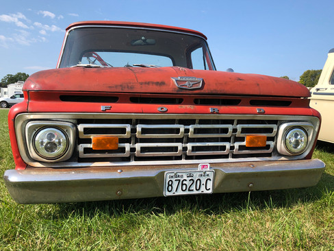 I’m in a bit of a rut lately, when it comes to finding examples of my own handiwork on YOM-registered vehicles. I only saw one of my “babies” in show car field, but it was a gem: A 1964 Ford pickup, plated with historically-correct 1964 truck plates. Ontario is not so on-the-ball as to require a suffix letter on any YOM vehicle with a cargo bed: There’s no one left at the MTO who knows the minutiae of which letters went to which vehicle types, and the rules don’t get that specific. But real truck plates are YOM-clear very infrequently, so it’s nice to see them mounted on a pickup.